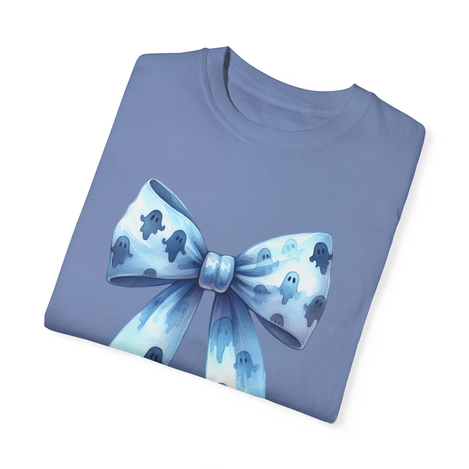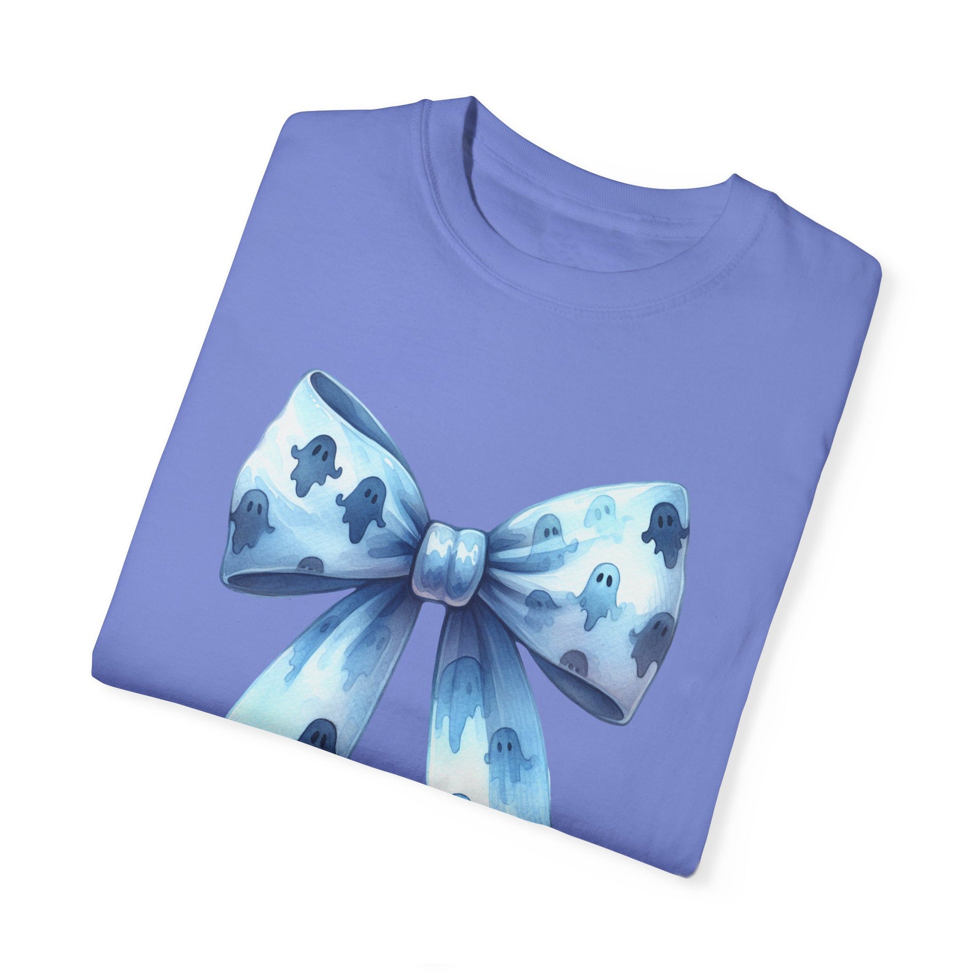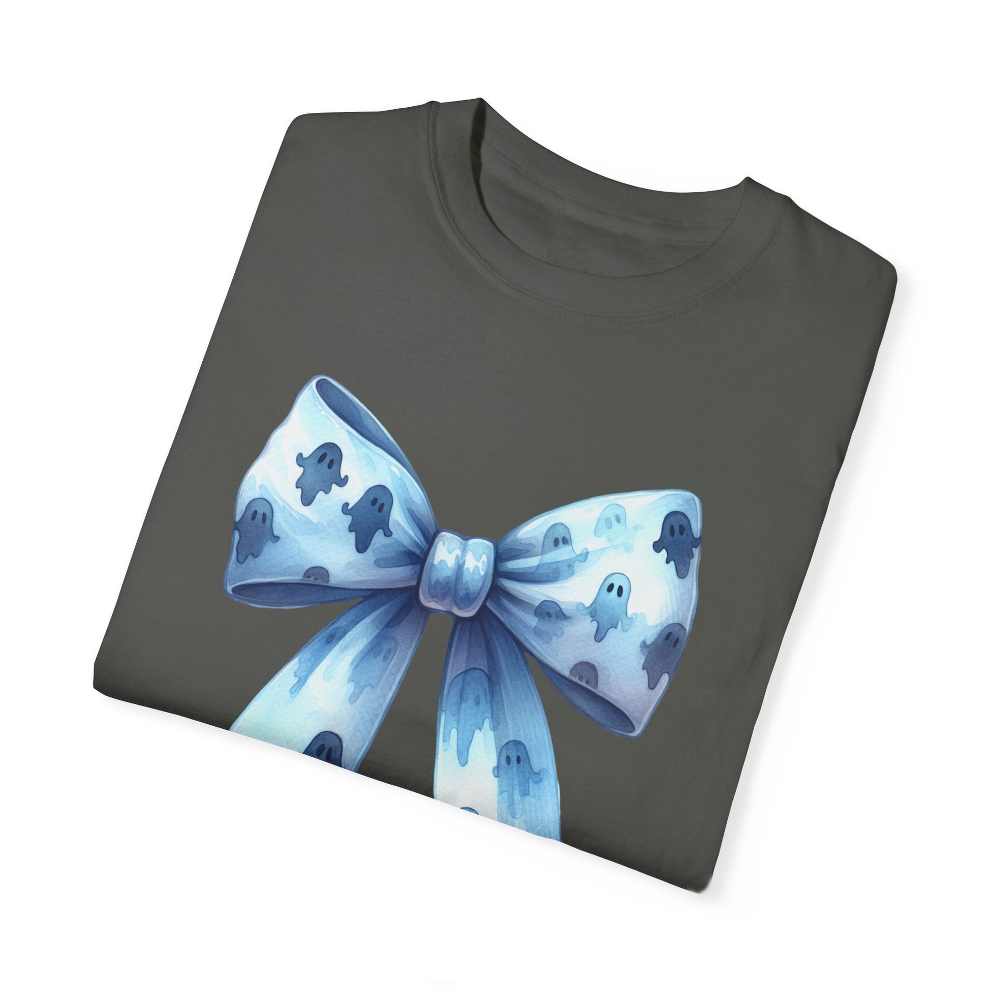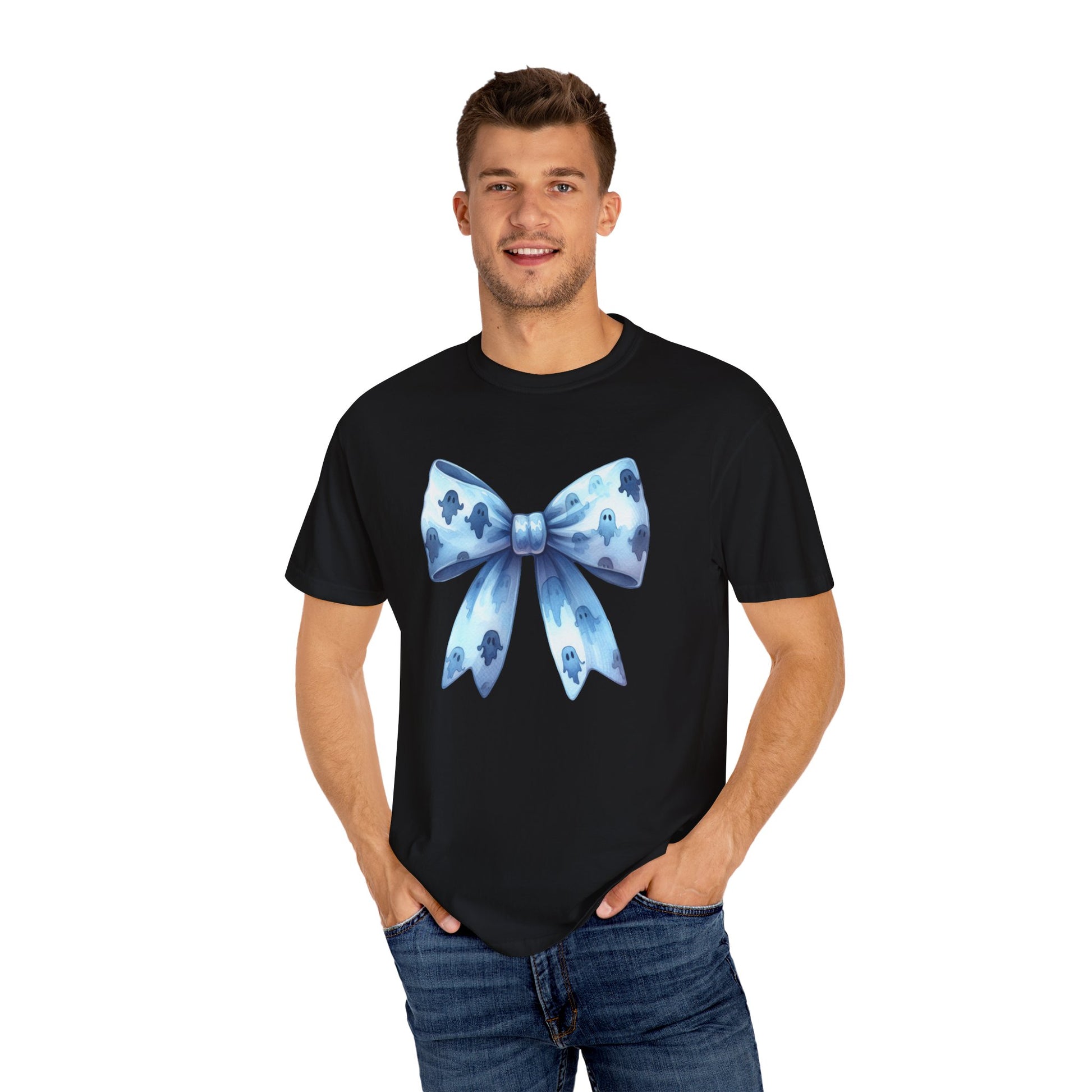 Halloween Coquette Bow Unisex T-shirt, Cute Gifts for Her, Garment-Dyed Tee, Halloween Shirt, Bow Design Shirt